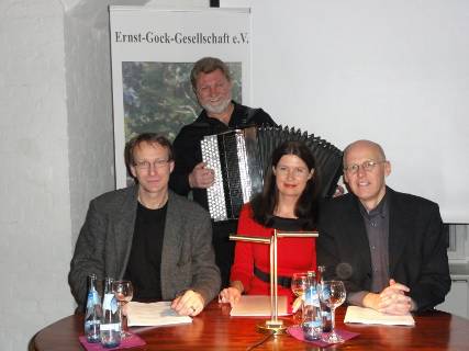 von links - Schauspieler und Sänger Sebastian Dunkelberg, Akkordeon-Virtuose Juri Kandelja, Kunsthistoriker Ulrike Fertig und Dr. Thomas Carstensen |