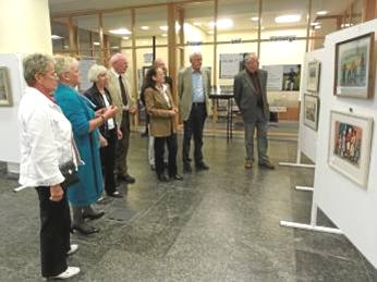 und die geplante Eröffnung mit dem Titel „Die Sammlung der Kunsthalle Bremen“ zu referieren. Vorher hatten die Mitglieder der Gesellschaft sowie Kunstinteressierte die Möglichkeit, die Bilderausstellung von Will Wieger in der Schalterhalle der HypoVereinsbank anzusehen, die am 22. Oktober endete. Die Bilder zeigen Prof. Dr. Wulf Herzogenrath mit der |
